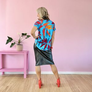 For me the whole reason behind designing Zilpah Tart garments is to make women look good and feel confident. I love using beautiful colours and patterns through my prints, and shapes that fit and flatter the body. One of my favourite sayings is ‘Be a flamingo in a flock of pigeons.’ That’s what Zilpah Tart is about.