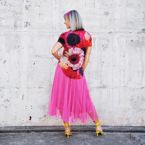 For me the whole reason behind designing Zilpah Tart garments is to make women look good and feel confident. I love using beautiful colours and patterns through my prints, and shapes that fit and flatter the body. One of my favourite sayings is ‘Be a flamingo in a flock of pigeons.’ That’s what Zilpah Tart is about.