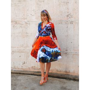 All of the exclusive fabric prints are designed by the Designer, Yumi Morrissey. She takes photographs of the places and things that inspire her design and turns them into beautiful, fun, digital patterns. These prints tell stories and create connections to the women who wear them. For more information about the prints click here.