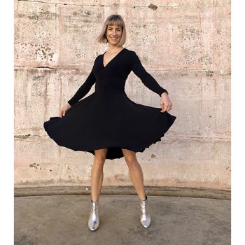 The Cross Front Dress is made in a Polyester Jersey. 95% Polyester and 5% Spandex.
