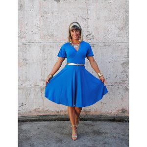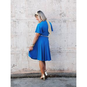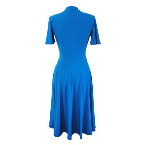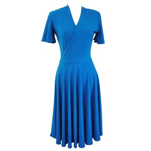 The Flutter Sleeve Dress is made in a Polyester Jersey. 95% Polyester and 5% Spandex.