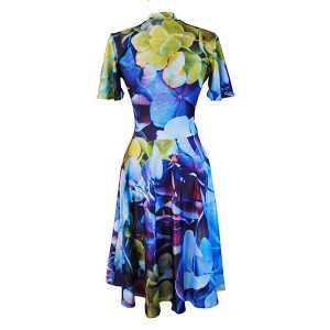 The Flutter Sleeve Dress is made in a Recycled Polyester Jersey. 95% Recycled Polyester and 5% Spandex.