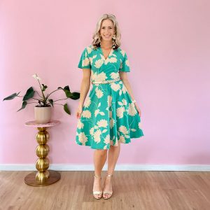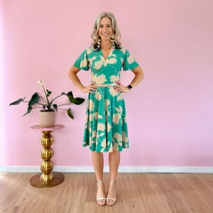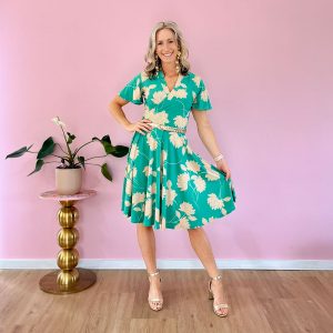 The Sage Bloom Dress is made in a buttery soft Polyester Jersey. 95% Polyester and 5% Spandex.