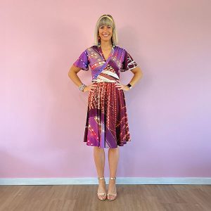 The Flutter Sleeve Dress is made in a Recycled Polyester Jersey. 90% Recycled Polyester and 10% Spandex.