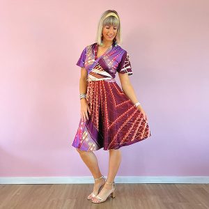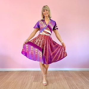 All of the exclusive fabric prints are designed by the Designer, Yumi Morrissey. She takes photographs of the places and things that inspire her design and turns them into beautiful, fun, digital patterns. These prints tell stories and create connections to the women who wear them. For more information about the prints click here.