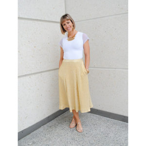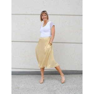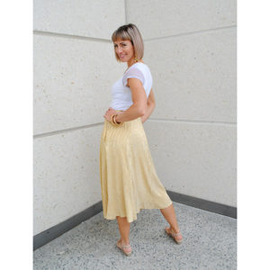 The Golden Skirt is made in a Polyester Jersey. 95% Polyester and 5% Spandex. This style has been restocked from the retired Diamonds collection for a limited time only! This skirt comes with pockets as standard and has a lining.