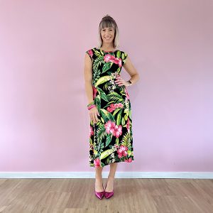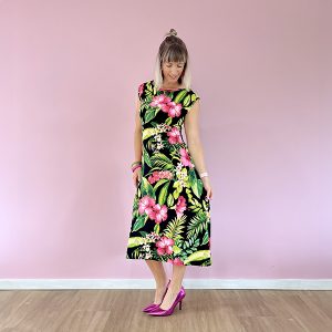 The Hibiscus Print Dress is made in a soft Polyester Jersey.  95% Polyester and 5% Spandex.