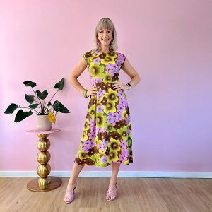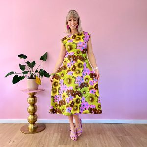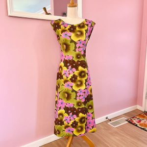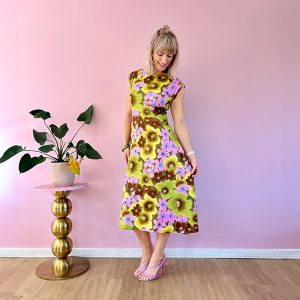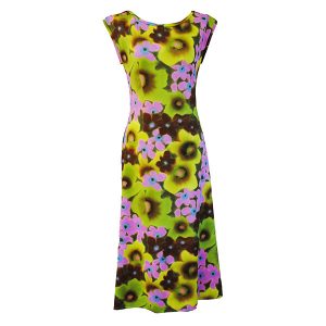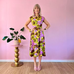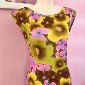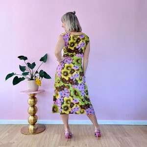 The Retro Flower Print Dress is made in a Polyester Jersey. 95% Polyester and 5% Spandex.