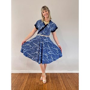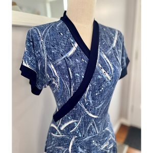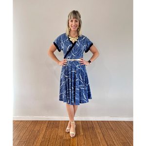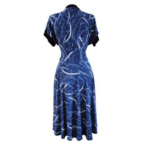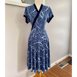 The Blue Ink Print Dress is made in a Polyester Jersey.  95% Polyester and 5% Spandex.