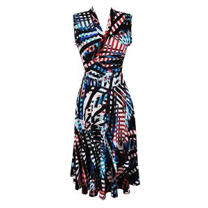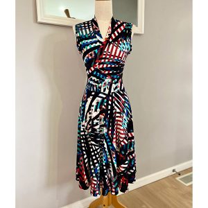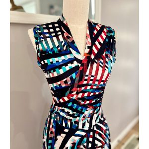 The Strobe Print Dress is made in a slinky feel Polyester Jersey. 95% Polyester and 5% Spandex.