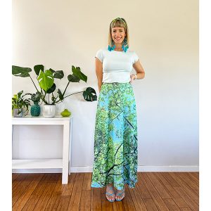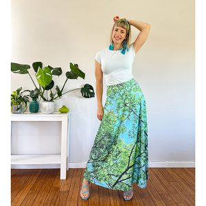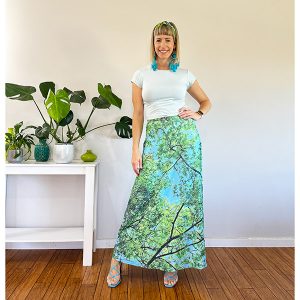 The Maxi Skirt is made in a Polyester Jersey.  95% Polyester and 5% Spandex.  This style is a new addition to the range!