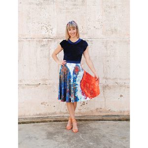 All of the exclusive fabric prints are designed by the Designer, Yumi Morrissey. She takes photographs of the places and things that inspire her design and turns them into beautiful, fun, digital patterns. These prints tell stories and create connections to the women who wear them. For more information about the prints click here.