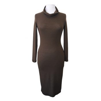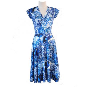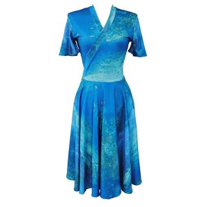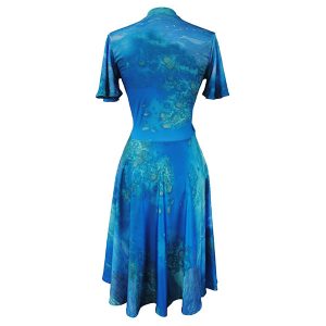 The Flutter Sleeve Dress is made in a Recycled Polyester Jersey. 95% Recycled Polyester and 5% Spandex.