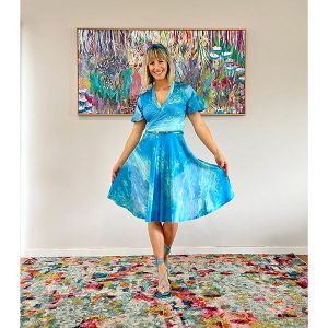 For me the whole reason behind designing Zilpah Tart garments is to make women look good and feel confident. I love using beautiful colours and patterns through my prints, and shapes that fit and flatter the body. One of my favourite sayings is ‘Be a flamingo in a flock of pigeons.’ That’s what Zilpah Tart is about.