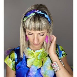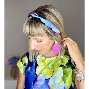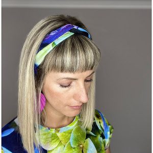 The Hydrangea Print headband is available in both Polyester and Bamboo Jersey. If you are purchasing to match your dress, stick with the same fabric as your dress.