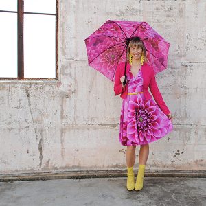New! The beautiful Dahlia Print is now available in wind proof umbrellas. These are high quality, sturdy umbrellas with a solid mechanism for durability. Match your outfit or create a statement on a gloomy day. Perfect for gifts or to treat yourself!