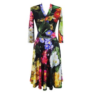 The Winter Cross Front Dress is made in a Recycled Polyester Jersey. 90% Recycled Polyester and 10% Spandex.