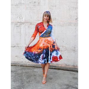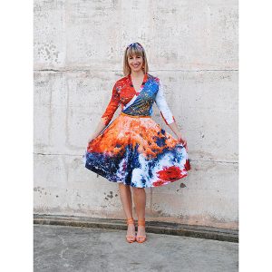 All of the exclusive fabric prints are designed by the Designer, Yumi Morrissey. She takes photographs of the places and things that inspire her design and turns them into beautiful, fun, digital patterns. These prints tell stories and create connections to the women who wear them. For more information about the prints click here.