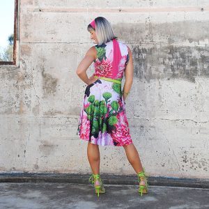 All of the exclusive fabric prints are designed by the Designer, Yumi Morrissey. She takes photographs of the places and things that inspire her design and turns them into beautiful, fun, digital patterns. These prints tell stories and create connections to the women who wear them. For more information about the prints click here.